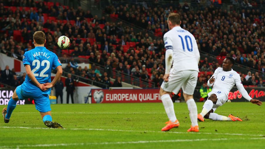 Danny Welbeck akifanya yake..Danny Welbeck alifunga bao lake la pili tena na kufanya 3-1 katika dakika ya 72. Ushindi huu umeifanya England ipae kileleni ikiwa na Pointi 12 ikifuatiwa na Lithuania na Slovenia zenye Pointi 6 kila moja.
