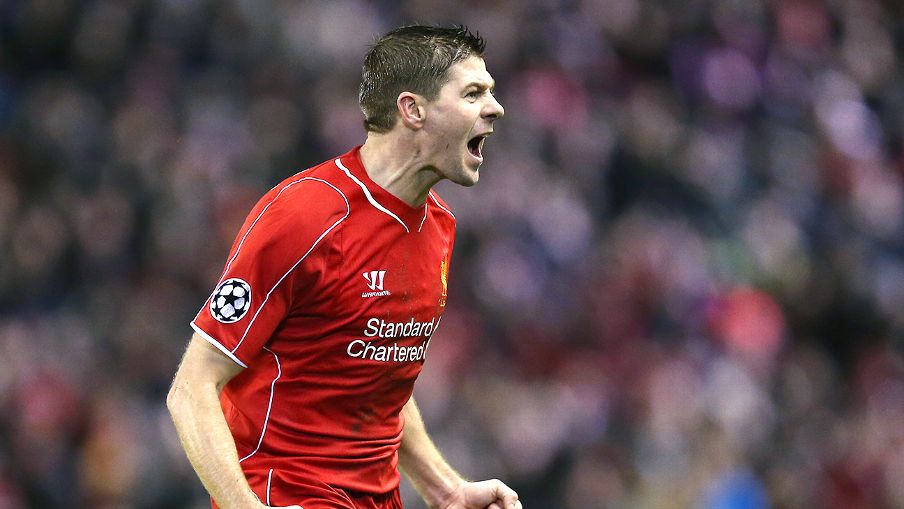 Steven Gerrard akishangilia bao lake la pili kwa Liverpool