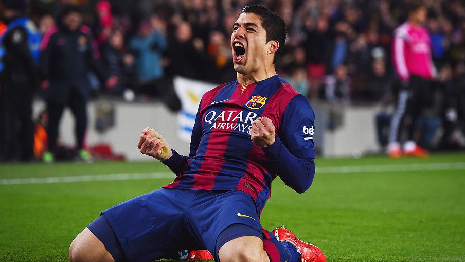 Suarez akishangilia vikali baada ya kuishindilia bao la Ushindi Real