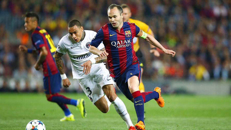 mpira mbele na Andrés Iniesta Luján na kukatiza kwa mabeki na kufunga