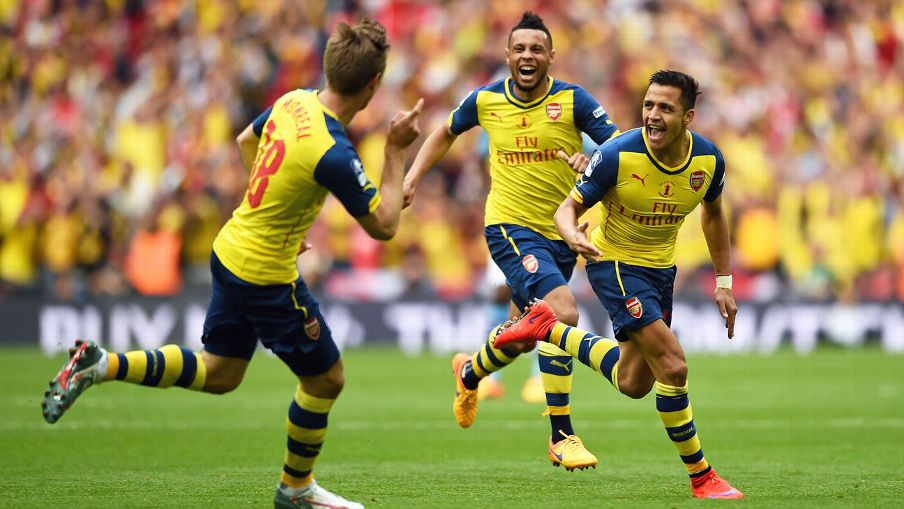 akipata pasi kutoka kwa Santi Cazorla dakika ya 62 kipindi cha pili. Theo Walcott aliifungia bao kipindi cha kwanza dakika 40 baada ya kupata pasi kutoka kwa Alexis Sánchez.