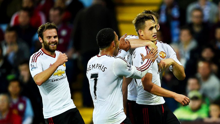akipongezwa na baadhi ya wachezaji wenzake wa United baada ya kuipa bao