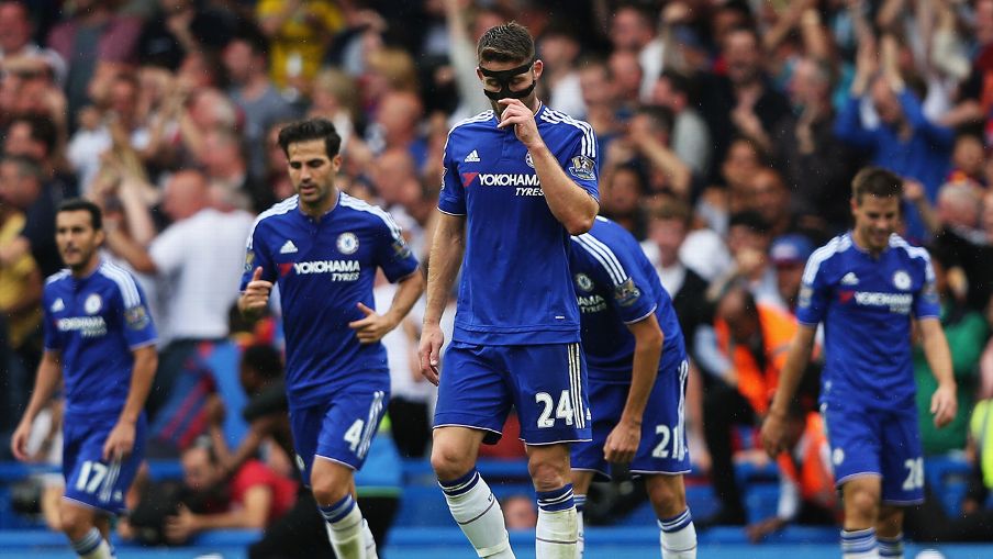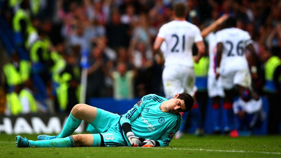 Kipa wa Chelsea akijikatia tamaa mara baada ya kufungwa na Crystal Palace.