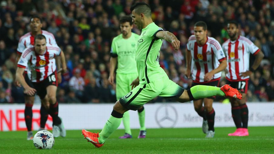 Sergio Agüero dakika ya 9 aliifungia bao la kuongoza City kwa mkwaju wa penati dhidi ya Timu ya Sunderland.