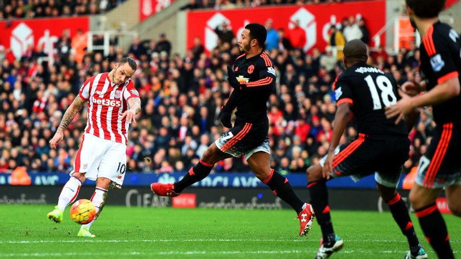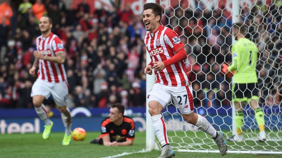 haraka. Katika Mechi hii ambayo Kepteni wa Man United Wayne Rooney alianza Benchi, Stoke walifunga Bao lao la kwanza Dakika ya 19 baada ya Pasi ya Geoff Camerok kwa Johnson kunaswa na Mchezaji wa Man United Memphis Depay lakini Kichwa chake hafifu cha kumrudishia Kipa wake De Gea kilitua kwa Johnson ambae haraka alimpasia Bojan Krkic na kufunga Bao laini.