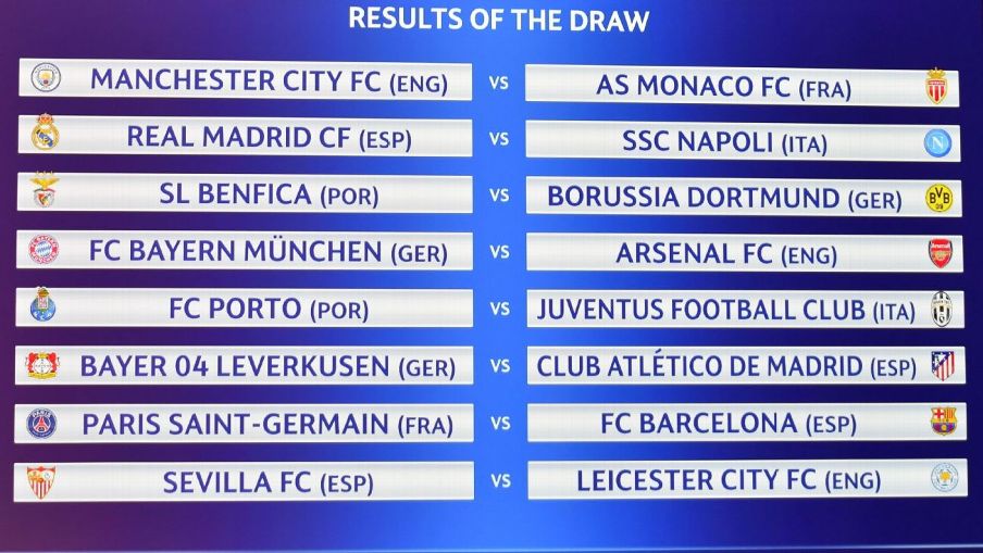 na Mabingwa Watetezi Real Madrid kupangwa kucheza na Napoli. Arsenal ya England itacheza na Vigogo wa Germany wakati PSG ikiivaa FC Barcelona.